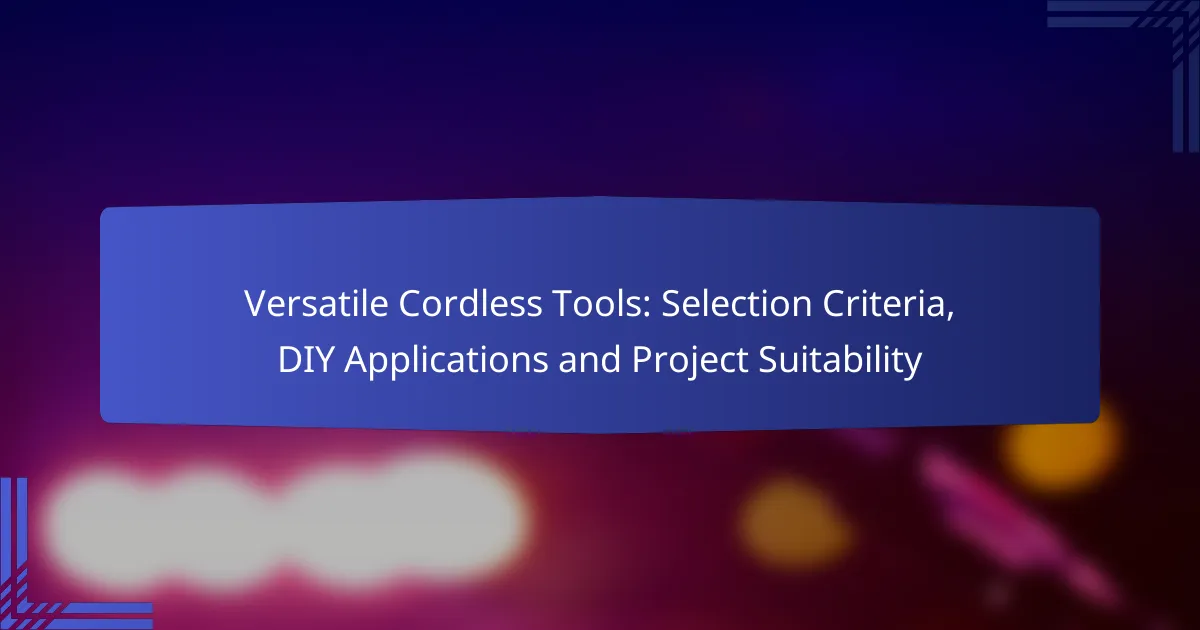 Versatile Cordless Tools: Selection Criteria, DIY Applications and Project Suitability