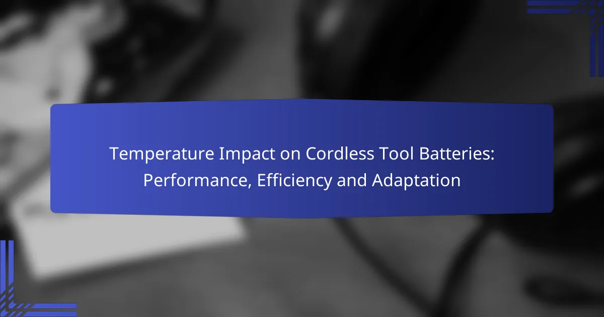 Temperature significantly impacts cordless tool battery performance, affecting both efficiency and lifespan. Extreme temperatures can lead to reduced capacity and performance, making it essential to understand how to manage these conditions for optimal use.